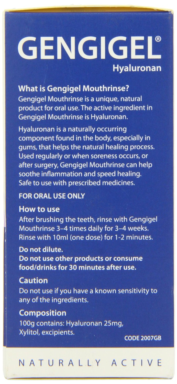Gengigel mouthrinse is unique, patented and naturally active product, suitable for most common oral conditions associated with soreness and inflammation. Gengigel stops any minor bleeding, soothes soreness ands sharpe pain of ulcers and promotes healing. Gengigel comes in a gel and mouthrinse both of which contain the highest quality, high molecular weight hyaluronan. They are useful in helping to manage common oral problems and, when recommended by your dental professional, to help protect and heal after various dental procedures.