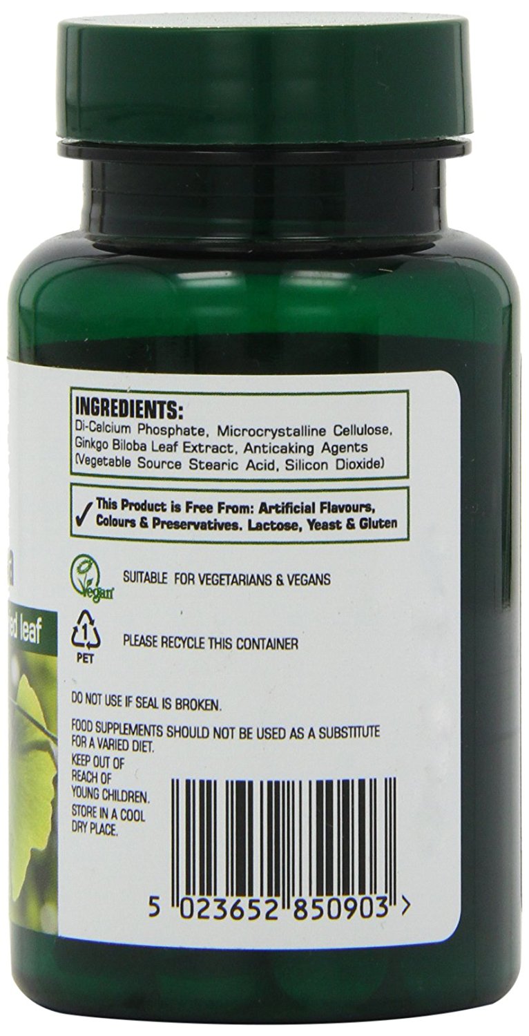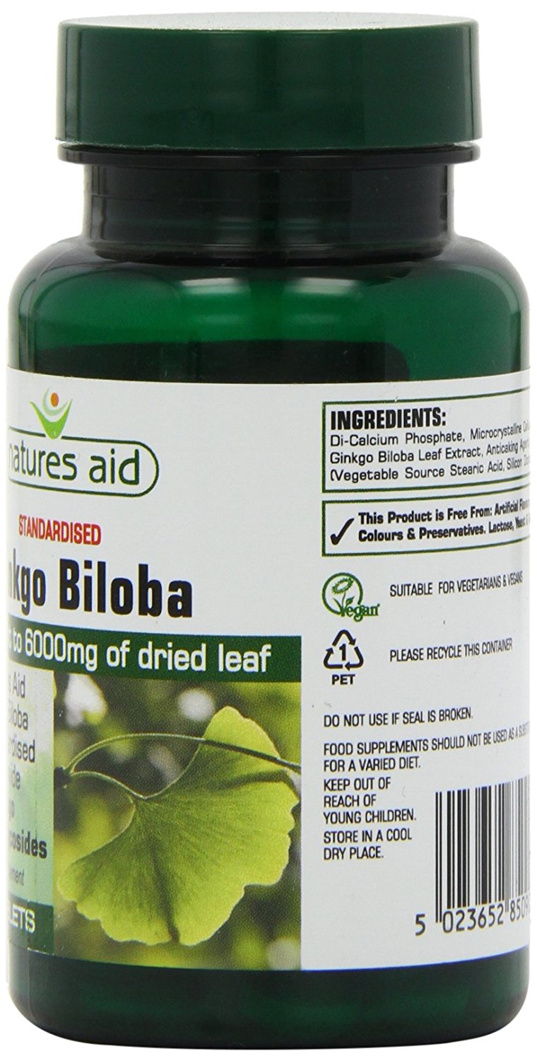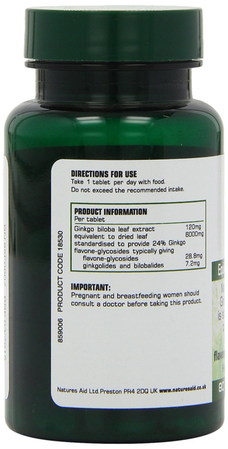 The Natures Aid Ginkgo Biloba Tablets standardised to provide ginkgo flavone-glycosides. Each tablet contains 120mg ginkgo biloba extract, which is equivalent to 6000mg of dried ginkgo. These are ideal for blood circulation and brain health.
