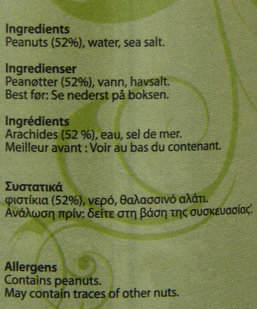 Nut Luncheon gluten free, Vegan INGREDIENTS: Peanuts (52%), water, sea salt.