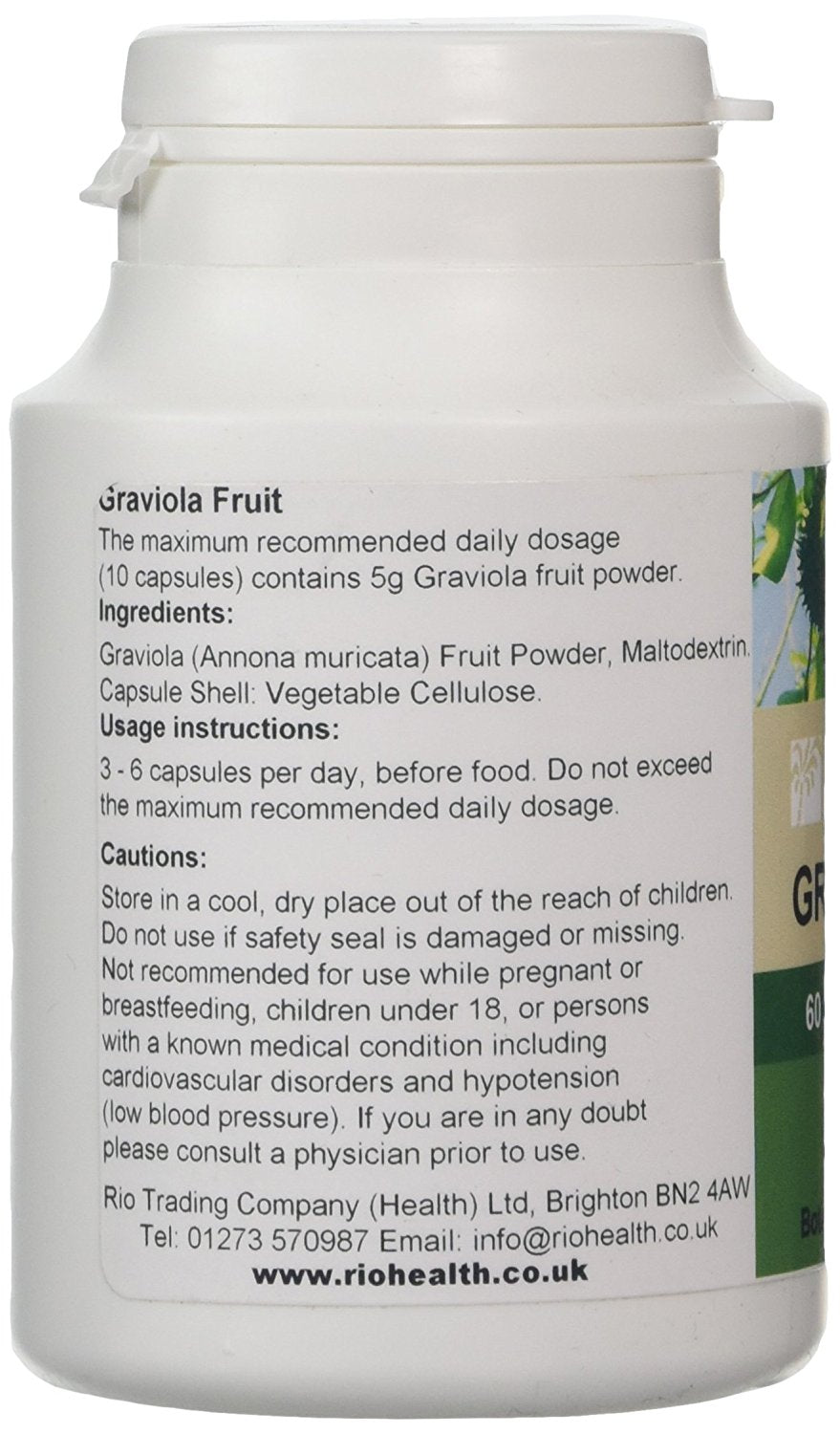 Rio Amazon 500mg Graviola Fruit Vegetarian Capsules contain a powder extract made from the concentrated juice of the Graviola fruit. Give yourself an antioxidant boost. Antioxidants are molecules which can help the body fight against harmful damage to cells caused by free radicals. Available in 60 capsules.