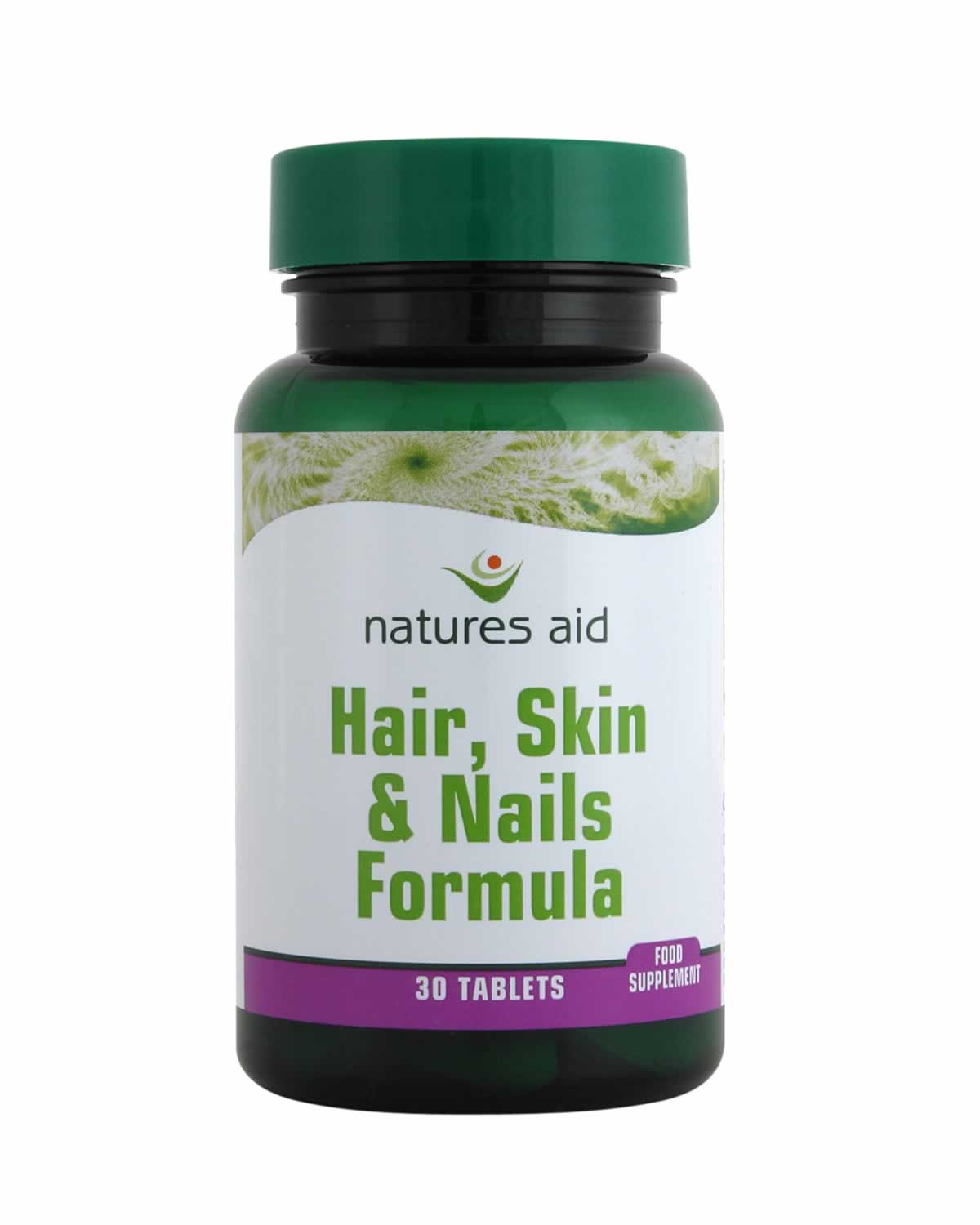 The Natures Aid Hair, Skin and Nails Formula Tablets includes vitamin C for normal collagen formation to support the normal function of the skin. Biotin for the maintenance of normal hair and skin. Zinc to support the maintenance of normal hair, skin and nails. Copper which helps with the maintenance of normal skin and hair pigmentation and manganese for the normal formation of connective tissue. These nutrients are combined with calcium, MSM, aloe vera, kelp and silica. Available in 30 tablets.