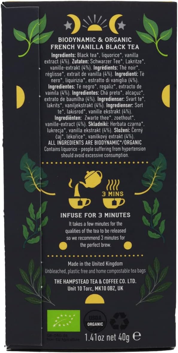 Hampstead Tea Organic Biodynamic French Vanilla Tea Bags 2g (40g) - 4 Pack