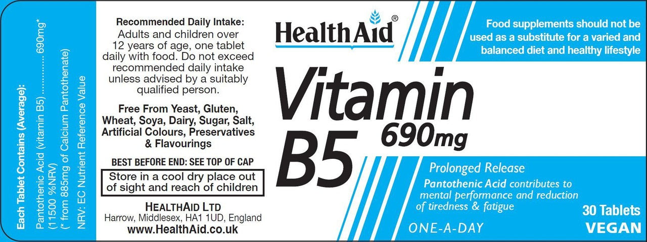 HealthAid Calcium Pantothenate (Vitamin B5) 750mg - Prolonged Release