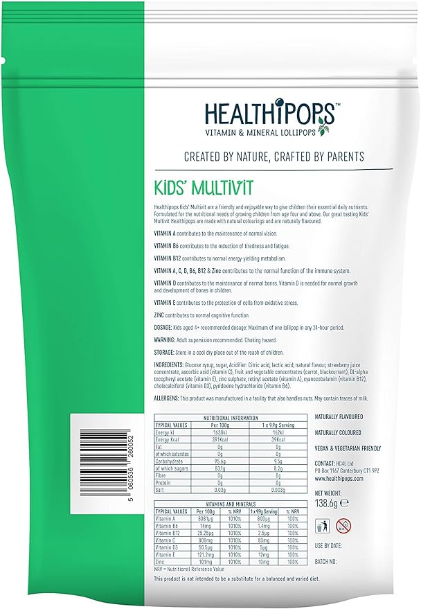 Healthipops Healthipops Vitamin & Mineral lollipops. Kids' Multivit - 2 Pack