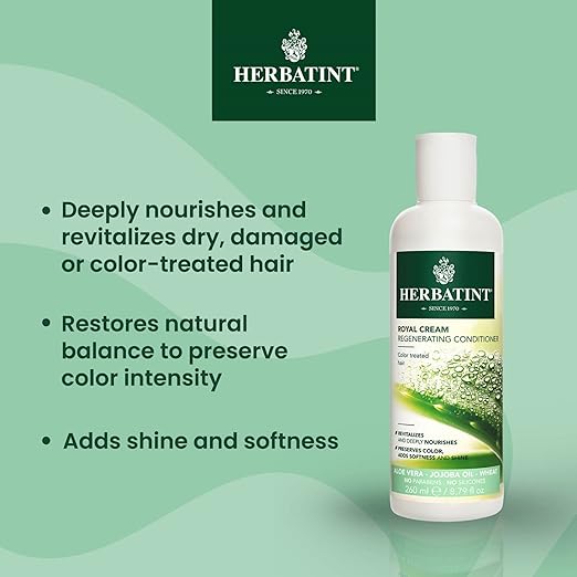 Herbatint Royal Cream Aloe Vera Intensive Conditioner nourishes and deeply restructures your hair. A true beauty treatment that grants softness and manageability. An intensive regenerating treatment. Proteins and vitamin F enrich its unique formula that combines the benefits of Aloe Vera, jojoba oil and wheat germ extracts. It nourishes and revitalizes dry, damaged or coloured hair.