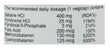 IngredientsBetaine HCI 400mg (**), Filler (cellulose), Capsule Shell (HPMC), Riboflavin 5-phosphate (Vitamin B2) 15mg (1070%), Magnesium Citrate 10mg (3%), Pyridoxal-5'-phosphate (Vitamin B6) 7.5mg (535%), Zinc Citrate 3mg (30%), 5-Methyltetrahydrofolate (Folate) 500mcg (250%), Methylcobalamin (Vitamin B12) 500mcg (20,000%). %RDA, ** = No RDA established.