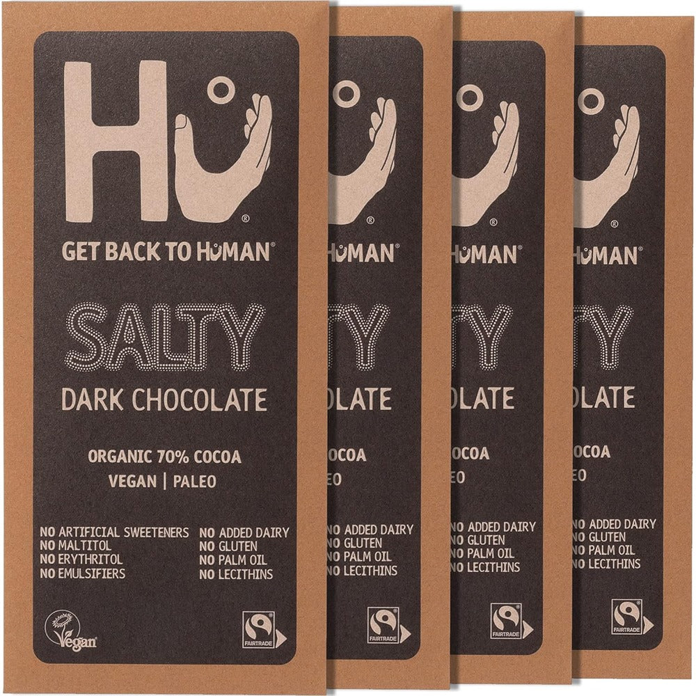 Mmmm delicious! Dark chocolate and salt are a match made in heaven, which is why HU have made their amazing salty dark chocolate bar. This bar contains 70% dark chocolate paired with a pinch of sea salt that is combined to create an explosion on your tongue with every bite! This is a chocolate bar that you will not want to miss and will most definitely struggle to stop eating. Hu?s salty dark chocolate bar is one you can eat without stress or worries about filling your body with junk. Hu has produced this bar using only the finest organic and fairtrade ingredients and likes to keep its ingredient list short and simple. HU?s salty dark chocolate bars are vegan-friendly, gluten-free and contain no synthetic ingredients or palm oil!