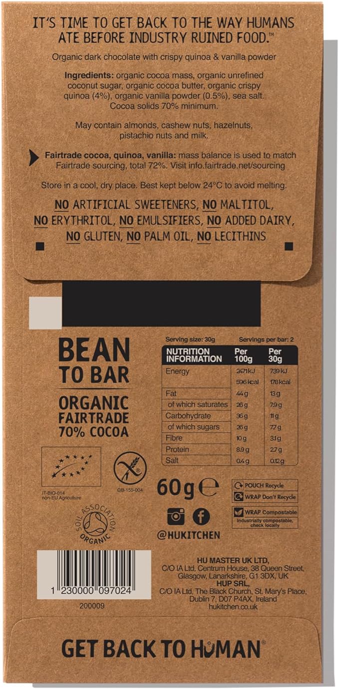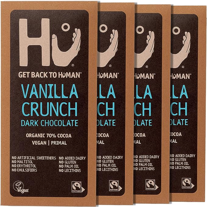Hu Hu Vanilla Crunch Dark Chocolate Bar 60g - 12 Pack