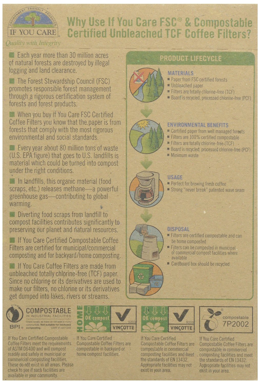 Our very first products hold a special place in our hearts. If You Care Cone Filters are made from FSC certified unbleached totally chlorine-free (TCF) paper. Since no chlorine or chlorine derivatives were used to produce these filters, no chlorine or chlorine derivatives get dumped into our lakes, rivers and streams. Our coffee filters feature a strong never break double seam, which assures the strength and integrity of the filters.
