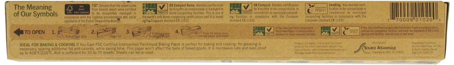 If You Care Parchment Baking Paper is made from unbleached totally chlorine-free (TCF) greaseproof paper. Use If You Care Parchment Baking Paper for baking, roasting, reheating and wrapping. Also available If You Care Parchment Baking Sheets pre-cut parchment sheets to fit standard metal baking pans.