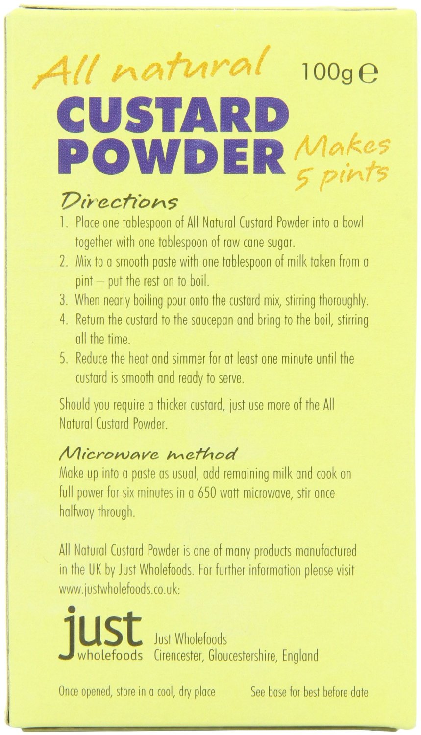 A joy for all custard lovers. This product is enjoyed by adults and children alike, easily made with cows, sheep or soya milk this real vanilla flavoured custard can be enjoyed as it is or added to fresh fruit to make a delious and easy dessert.