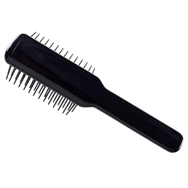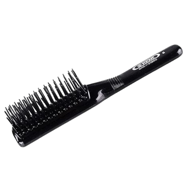- A 7-row nylon quill anti-static hair brush with rubber pad