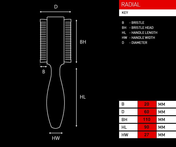 A half radial, cherry wood, white bristle brush. A hand finished half radial brush made from cherry wood and filled with finest white bristle for an extremely sophisticated and pure look. Kent Finest: Ladies Range is a range of luxurious hand finished bristle brushes. Brushing hair is the simplest beauty treatment there is, easing tension and stress from the head and neck. Brushing stimulates and encourage essential oils in the scalp to flow through the hair strands nourishing and protecting each hair, leaving it smooth and naturally shiny. Bristle strengths vary for fine or thick hair and for best brushing performance it is important to use the right bristle strength. A bristle is similar to a hair in construction and sections cut from nearer the root of the bristle are strongest and best for brushing thick hair, while sections from the tip or flag end are softer and more suited to fine hair and a delicate scalp. All brush designs are suitable for traditional brushing or blow drying.