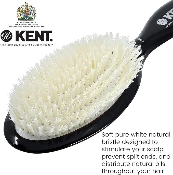 Kent CSGM White Bristle Cushioned Hairbrush is an oval cushioned brush finished in a deep midnight ruby coloured handle and filled with pure soft white bristle. A terrific brush for people with fine or thinning hair and a design ideal for livening up and grooming medium and long length hair. The bristle cleans the hair, promotes shine and stimulates the scalp. Available in medium size.