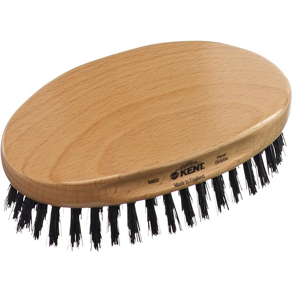 Kent MG2 Hairbrush is an oval beech wood military brush filled with medium black bristle. Made from finest timbers and carefully sourced natural bristle which is 'cut' from different sections to offer a choice of strengths for thick, medium, fine or receding hair. Suitable for all hair types.