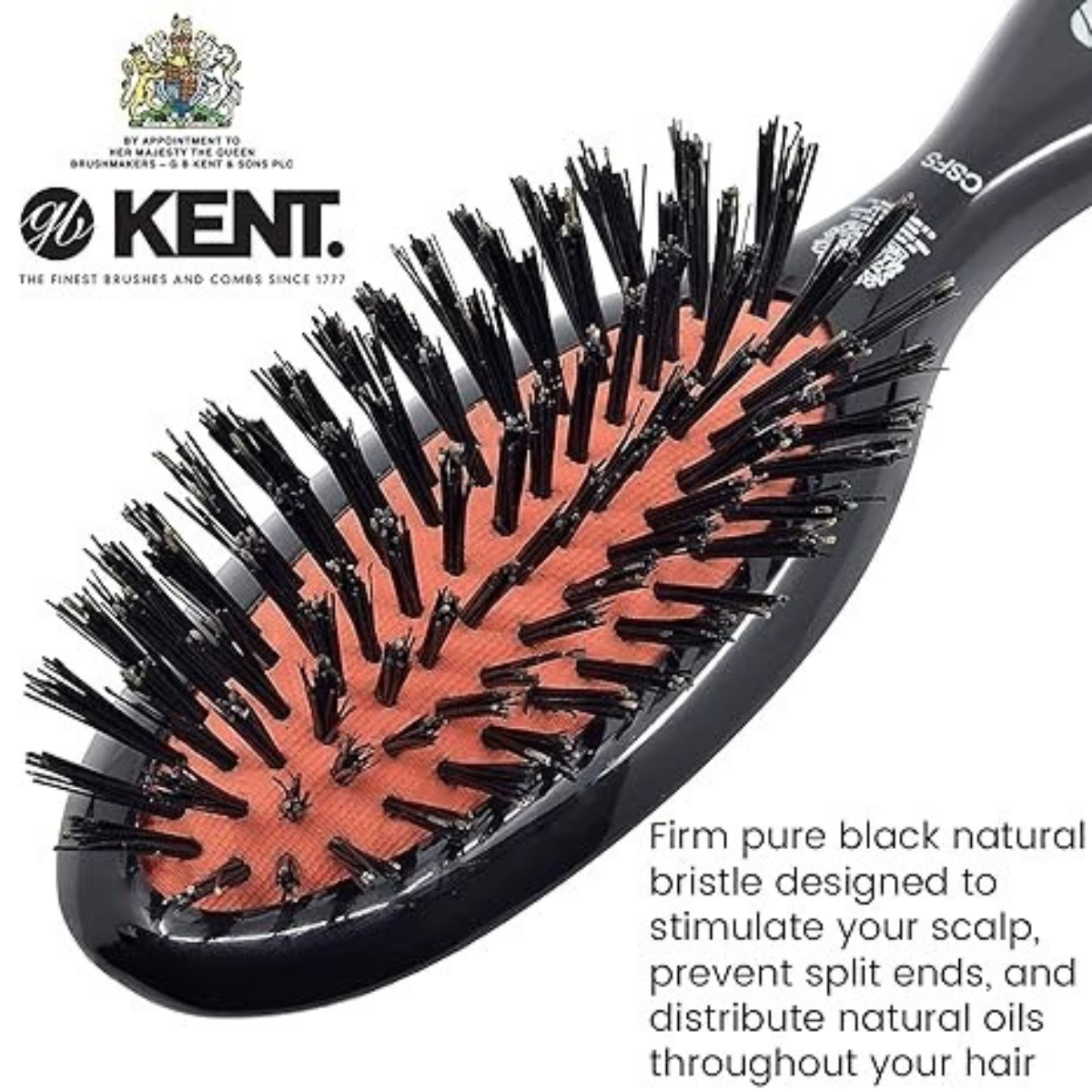 Kent CSFS Cushioned Hairbrush is an oval cushioned handbag sized brush finished in a deep midnight ruby coloured handle and filled with pure black bristle. A design ideal for livening up and grooming short, medium and even long hair. The bristle cleans hair, promotes shine and stimulates the scalp. Available in small size.
