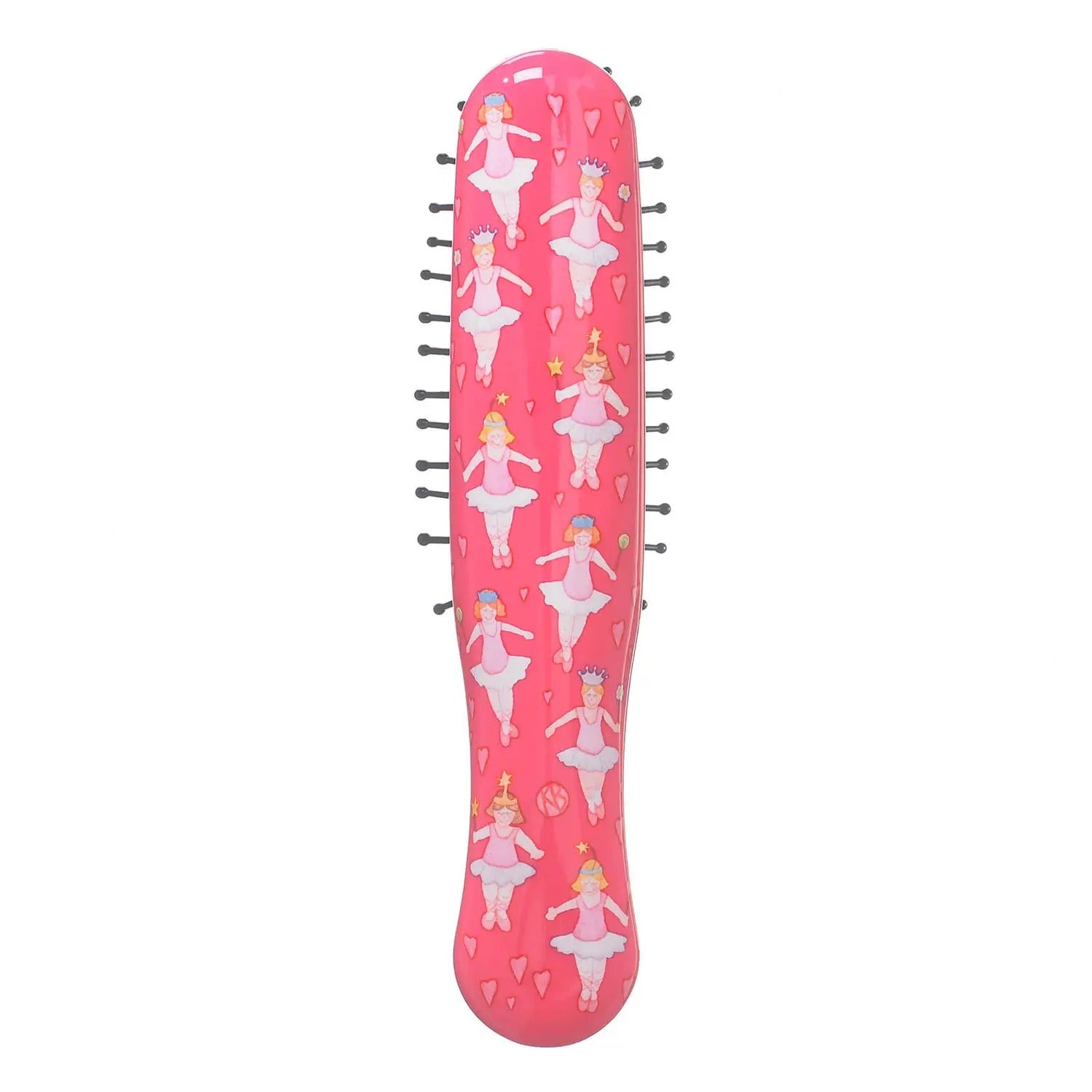 Kent ArtHedz Ballerinas Designed Pocket Size Hair Brush is just great little brush. The air cushioned head protects the scalp from damage and split ends. It is filled with gentle non-scratch ball ended quills, this brush is the perfect choice for bags, pockets, traveling and children.