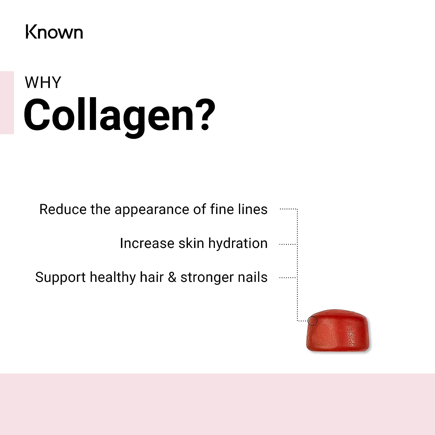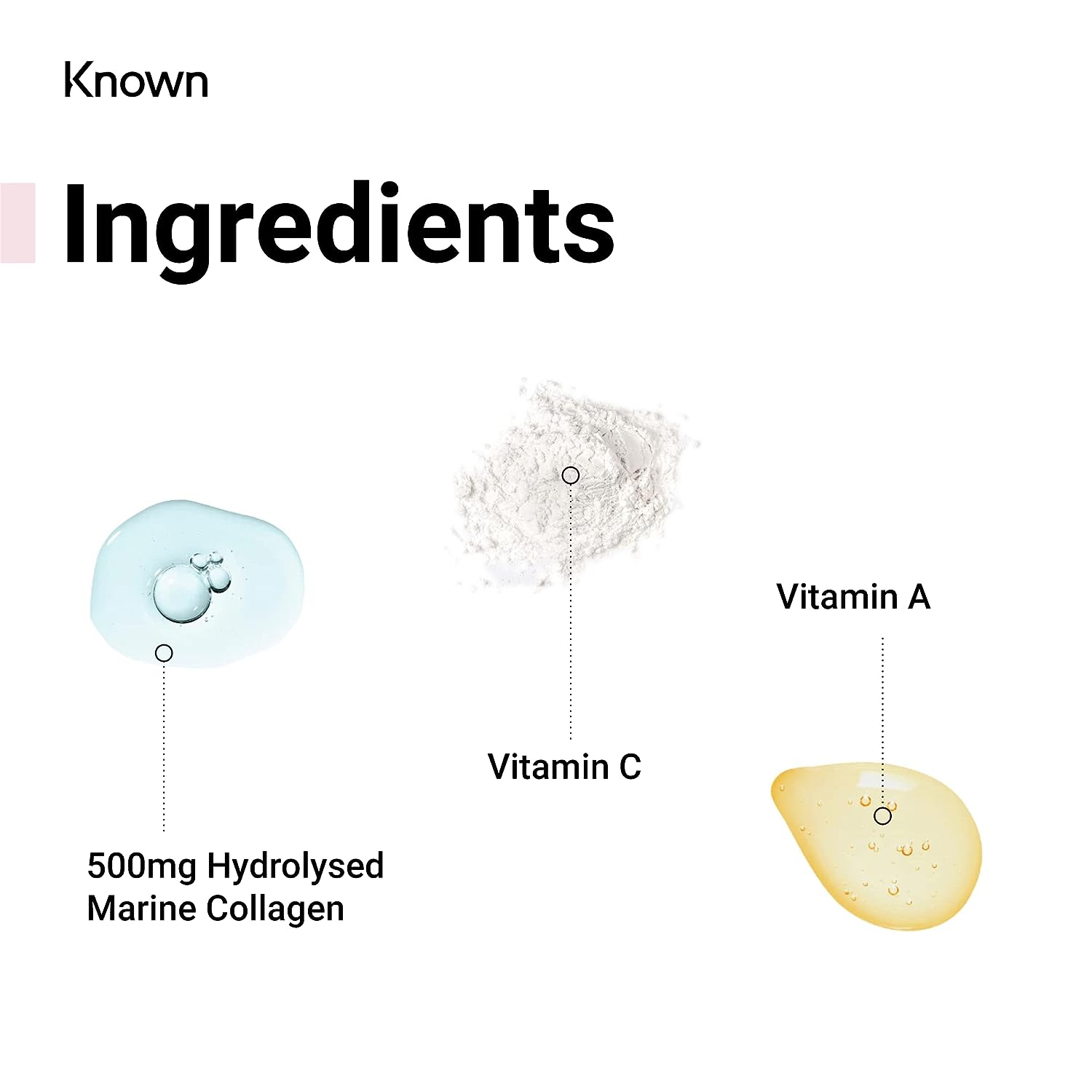 Known Nutrition Hydrolysed Marine Collagen Pomegranate Gummy Supplements x 60 is a two-month supply of tasty Pomegranate gummies with 500mg of premium, Norwegian Hydrolysed Collagen Peptides supported by Vitamin C and Vitamin A. Collagen is the most abundant protein in our body, making up 75% of our skin, giving it its strength and elasticity. As we age, our Collagen production naturally decreases, leading to wrinkles and other signs of ageing. But fear not, formulated with premium Marine Collagen sourced from Norway, Known's Marine Collagen Supplement Gummies contain 500mg of Collagen Peptides per serving. Support with 80mg of Vitamin C, which contributes to the normal function of skin, bones and cells and normal collagen formation. It also supports the normal function of the immune system, psychological system and nervous system. Our Known Collagen Gummies also include Vitamin A (also known as Retinol), widely recognised as an anti-aging powerhouse, and is scientifically proven to help maintain normal hair skin and nails. Known Nutrition create naturally formulated health and beauty supplements that work and taste good. All products are rigorously tested to provide a blend of the highest quality ingredients. They are manufactured in compliance with GMP standards to ensure you get the best possible vitamins and mineral supplements.