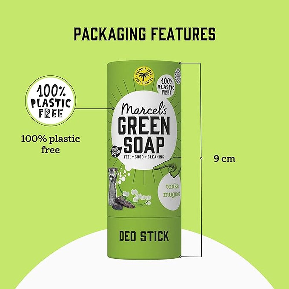Marcel's Green Soap now has a sustainable deodorant, which helps to neutralise unpleasant odours so that you can get through the day smelling fresh! When you put something on your skin, it is good to know that it doesn't contain any nasty ingredients such as aluminum or alcohol... and like all Marcel's products, they smell super lovely too! These deosticks are made from organic oils and baking soda and are packed in cardboard. Because Marcel doesn't like plastic soup! TONKA & MUGUET Tonka is a holy bean from South America. It can even be hallucinatory so that you can dream away while you are in the shower. Muguet used to be widely used in snuff. Soon washing will become the new smoking!