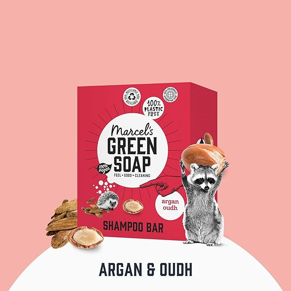 - Marcel's Green Soap plastic-free shampoo bar is made from ingredients that are gentle on your hair and the planet. Argan oil provides shiny, nourished hair and a healthy scalp