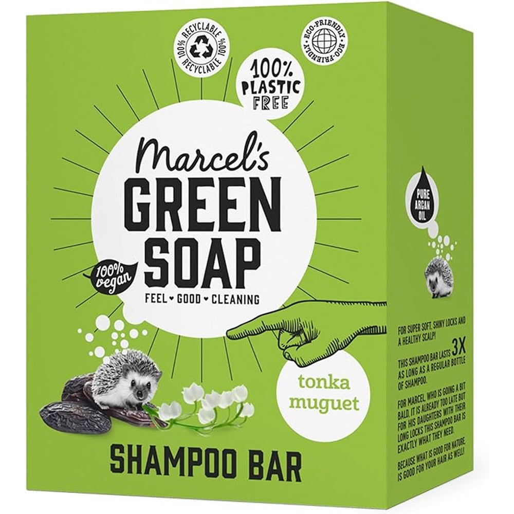 - Marcel's Green Soap plastic-free shampoo bar is made from ingredients that are gentle on your hair and the planet. Argan oil provides shiny, nourished hair and a healthy scalp