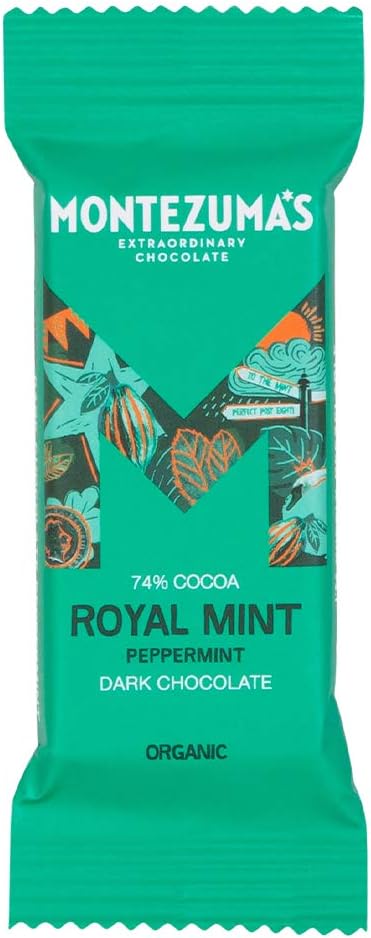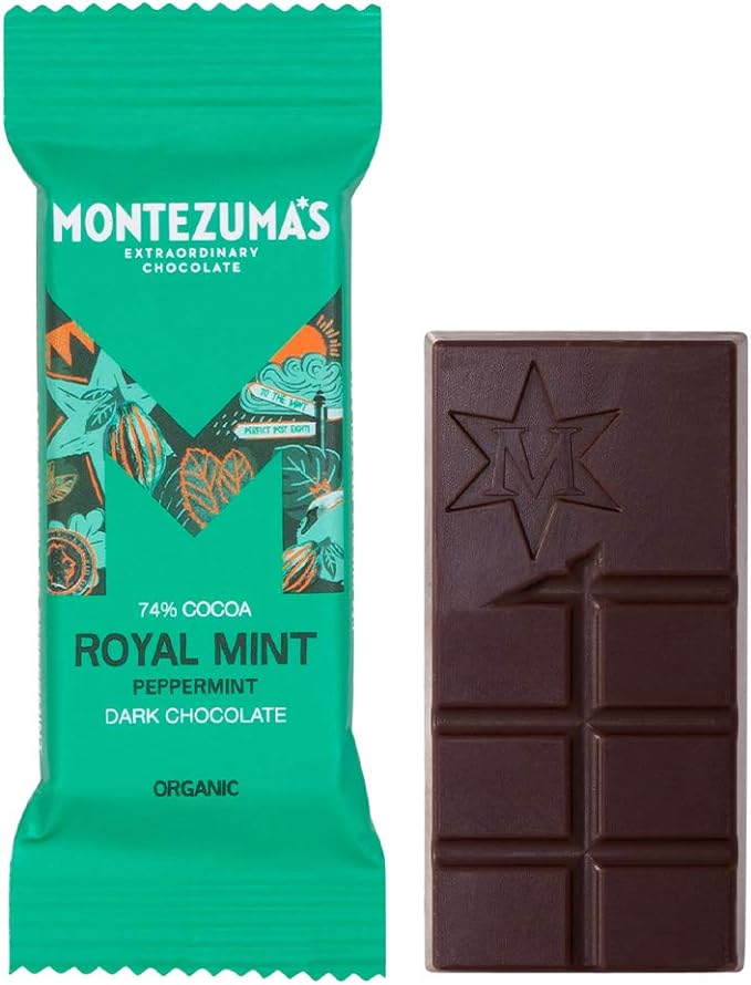 Montezumas Chocolate Royal Mint mini bar Dark Org 74% with Mint 25g - 26 Pack