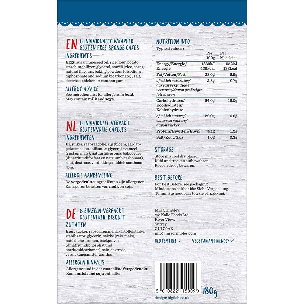 Mrs Crimbles Mrs Crimbles Gluten Free Classic Madeleines 6 pack 170g
