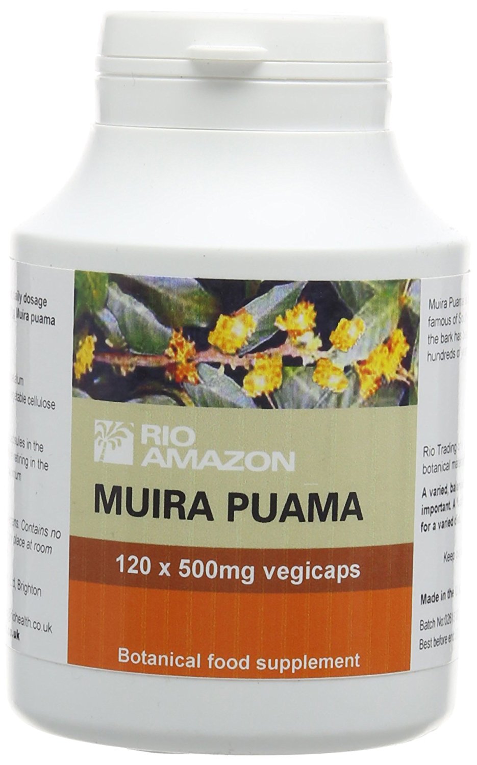 Rio Amazon 500mg Muira Puama Vegetarian Capsules are energy tonic for physical capacities, making it a great option for healthy ageing. May help maintain sexual wellbeing. Rich in EFAs, plant sterols, including beta-sitosterol. Available in 120 capsules.