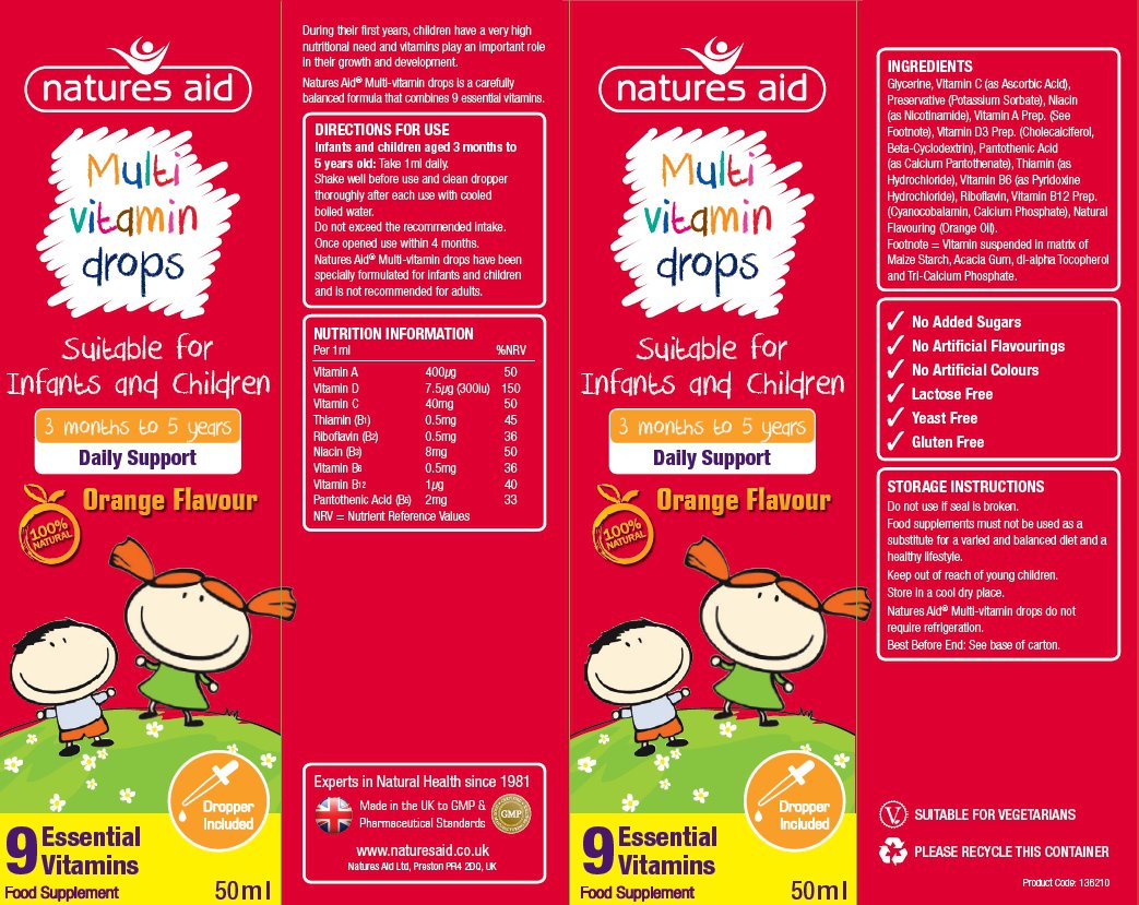 During their early years, children have a very high nutritional need and vitamins play an important role in their growth and development. Natures Aid Multi-vitamin drops is a carefully balanced formula that combines 9 essential vitamins to help maintain your childs healthy growth. Available in 50 ml.