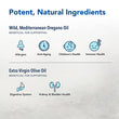 IngredientsWild Mediterranean oregano oil P73, organic extra virgin olive oil.