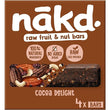 Nakd Cocoa Delight snack bars are a scrummy combination of rich cocoa, fruit and nuts. Made from 100 percent natural ingredients smooshed together with no added sugar or sticky syrups, just chocolaty satisfaction. We want everyone to find their snack soulmate. So, everything we make is gluten free, dairy free and vegan-friendly. Available in 4 packs of 35 g each.