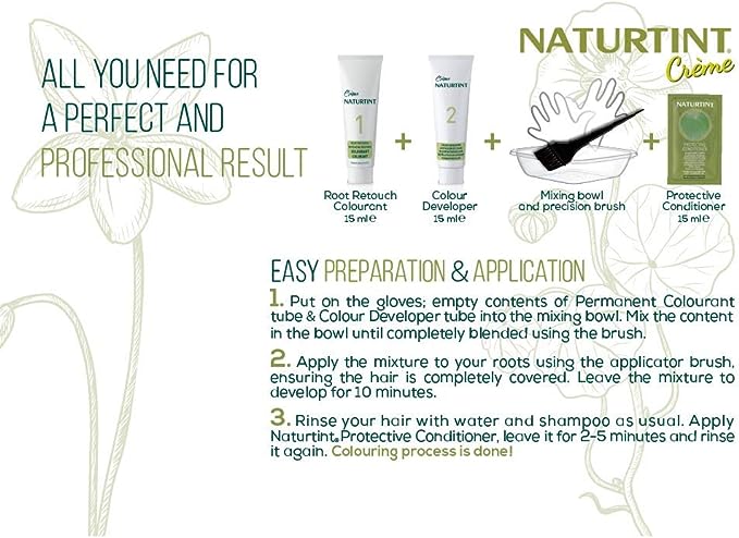 NATURTINT ROOT RETOUCH CREME LIGHT BROWN SHADES COLOURANT INGREDIENTS: AQUA PURIFICATA (PURIFIED WATER)*, CETEARYL ALCOHOL**, GLYCERIN**, ETHANOLAMINE, OLETH-20, OLETH-5 PHOSPHATE, TOLUENE-2,5-DIAMINE SULFATE, MYRISTYL ALCOHOL**, CRAMBE ABYSSINICA SEED OIL**, LIMNANTHES ALBA (MEADOWFOAM) SEED OIL**, BEHENTRIMONIUM METHOSULFATE, DIOLEYL PHOSPHATE, QUATERNIUM-80, PROPYLENE GLYCOL, ARGANIA ESPINOSA KERNEL OIL**, COCAMIDOPROPYL BETAINE*, CETEARETH-80, MYRISTYL GLUCOSIDE**, GLYCOL DISTEARATE, GLYCERYL STEARATE*, LAURETH-4, TETRASODIUM GLUTAMATE DIACETATE**, SODIUM ERYTHORBATE, SODIUM METABISULFITE, SODIUM CHLORIDE*, SODIUM BENZOATE, 4-CHLORORESORCINOL, p-AMINOPHENOL, PHENYL METHYL PYRAZOLONE, N,N-BIS (2-HYDROXYETHYL)-p-PHENYLENEDIAMINE SULFATE, 2-AMINO-4-HYDROXYETHYLAMINOANISOLE SULFATE, m-AMINOPHENOL, 2-METHYLRESORCINOL, 2,4-DIAMINOPHENOXYETHANOL HCL, 4-AMINO-2-HYDROXYTOLUENE. NATURTINT ROOT RETOUCH CREME LIGHT BROWN SHADES DEVELOPER INGREDIENTS: AQUA PURIFICATA (PURIFIED WATER)*, HYDROGEN PEROXIDE, CETYL ALCOHOL**, CETEARYL ALCOHOL*, CETEARETH-20, LAURETH-3, OXYQUINOLINE SULFATE, PHOSPHORIC ACID. PROTECTIVE CONDITIONER INGREDIENTS: AQUA PURIFICATA (PURIFIED WATER)*, CETEARYL ALCOHOL**, GLYCERIN**, CITRUS LIMON (LEMON) FRUIT WATER***, BEHENTRIMONIUM METHOSULFATE, HYDROLYZED WHEAT PROTEIN, HELIANTHUS ANNUUS (SUNFLOWER) SEED EXTRACT, LINUM USITATISSIMUM (LINSEED) SEED EXTRACT***, CETEARETH-20, CETYL ALCOHOL, GLYCERYL STEARATE, CETETH-20, STEARETH-20, PARFUM (FRAGRANCE)*, SODIUM BENZOATE, POTASSIUM SORBATE, LIMONENE*, CITRIC ACID*. ***CERTIFIED ORGANIC, **APPROVED NATURAL ORIGIN, *NATURAL ORIGIN