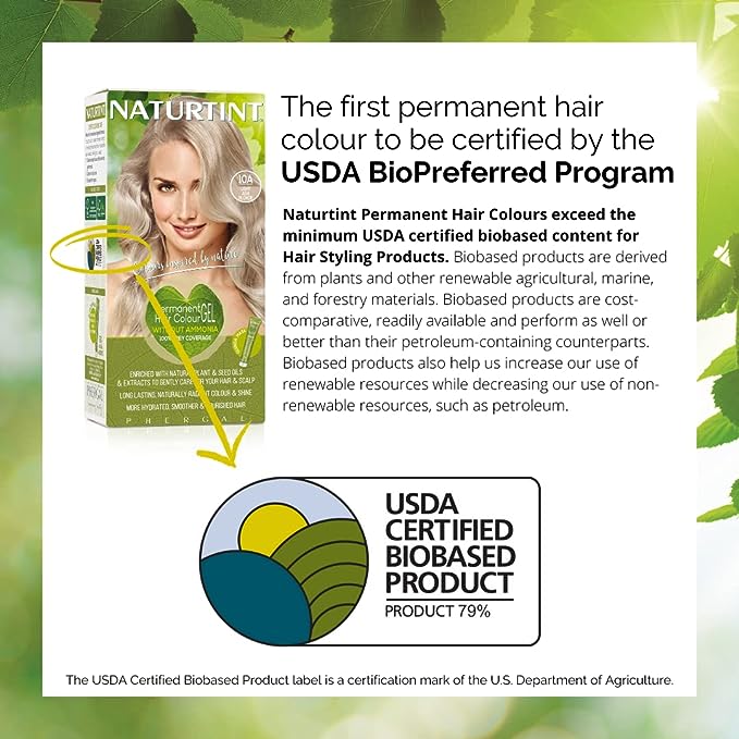 Naturtint Permanent Hair Colour is free from ammonia and featuring plant-based active ingredients. The ammonia- free hair colour nor does it contain other harsh chemicals that can irritate and damage your hair. The active plant-based ingredients and the pH of the colorant cream help to open the external cuticle layer of the hair naturally. Next, the natural colour of the hair is removed, and micro-pigments penetrate the deepest layers of the hair with the new colour. Provides colour that lasts while leaving hair healthier and revitalized. Gives intense and radiant colour. Low chemical content. 100 Percent grey coverage. No parabens, no resorcinol, no ammonia, dermatologically tested. This Box Contains: Protective Gloves, Instruction Leaflet, 60ml Naturtint Colorant, 60ml Colour Developer, 35ml Nutrideep Multiplier and 15 ml Shampoo. Available in 10A light ash blond colour.