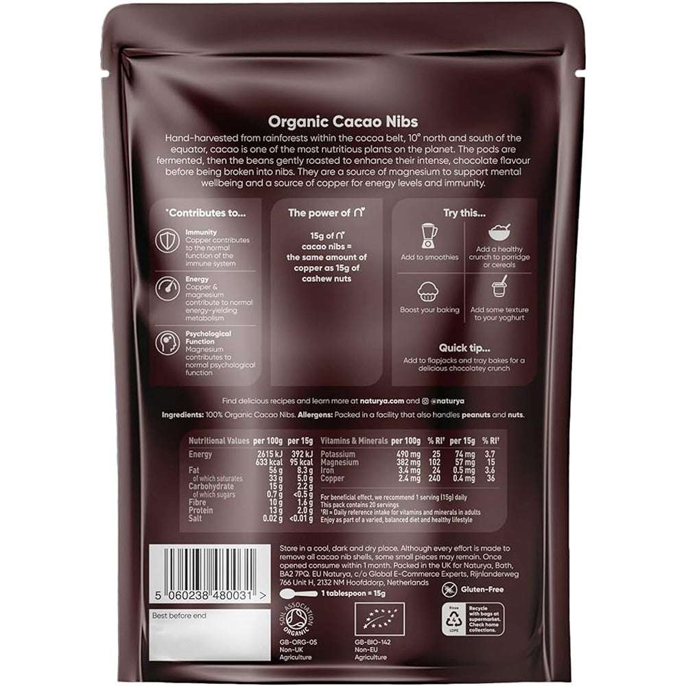 - Mood-enhancing properties: Cacao nibs contain theobromine, which is known to improve mood and provide a natural "feel-good" effect on the body.