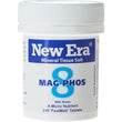 New Era Number 8 Mag Phos (Magnesium Phosphate) 240 Tablets contain triturated (finely ground) tiny particles of cell salt in easy to take, dissolve on the tongue 'FastMelt' tablets with the essential nutrient biotin. Each bottle contains 240 small "melt under the tongue" tablets for which New Era is famous. Their cell salt nutrients are therefore more rapidly absorbed into the bloodstream than any ordinary tablet can be expected to achieve when chewed, swallowed or taken with a drink. A little extra Biotin added an essential nutrient which contributes to the Numberrmal energy-yielding metabolism, the functioning of the nervous system, Numberrmal macronutrient metabolism and psychological function. It also contributes to the maintenance of Numberrmal hair, skin and to the maintenance of Numberrmal mucous membranes.