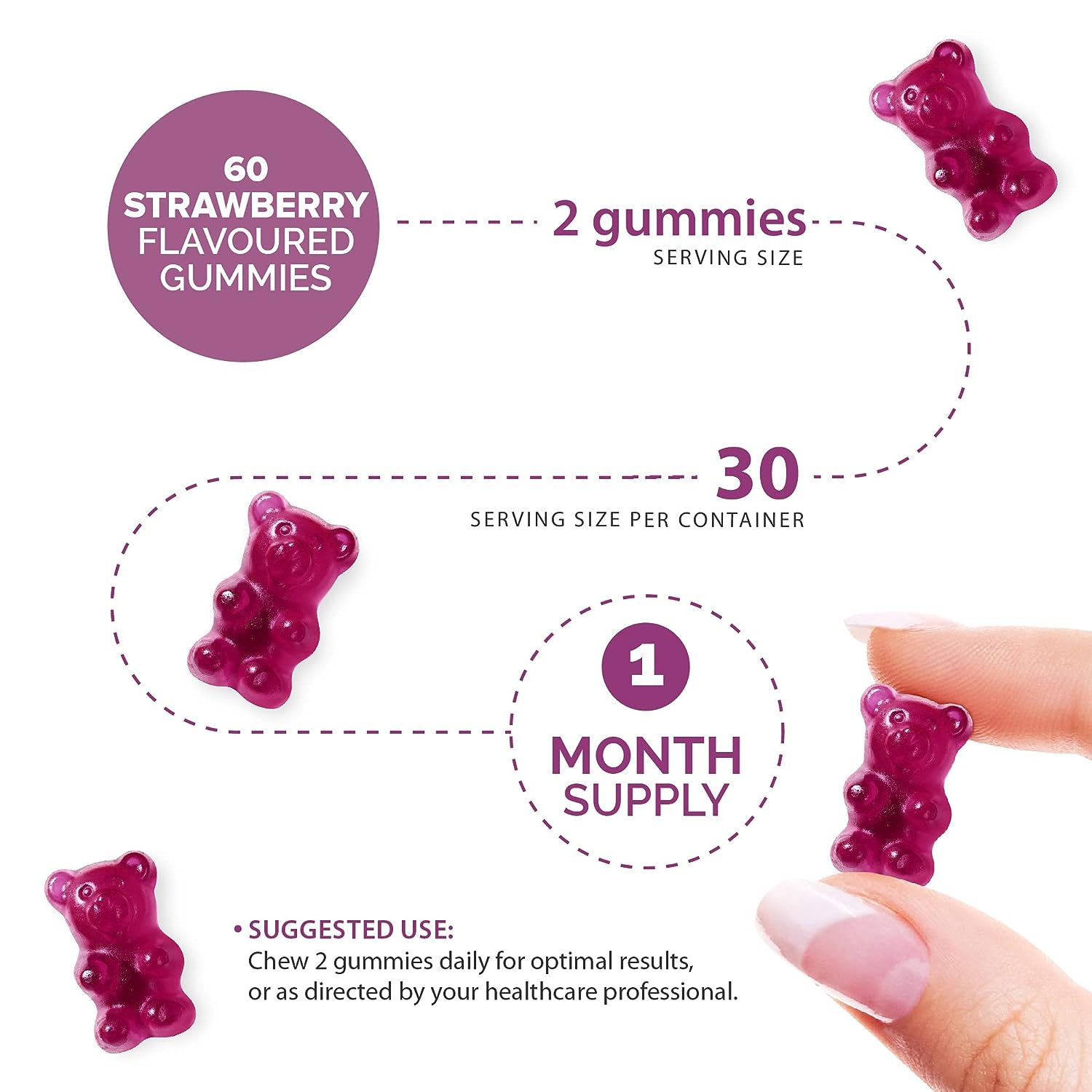 IngredientsVitamin B12 (as Cyanocobalamin), Vitamin B2 (as Riboflavin), Vitamins C (as Ascorbic acid), Vitmain B1 (as Thiamine Hydrochloride), Niacin (as Nicotamide), Vitamin B6 (as Pyridoxine Hydrochloride), D-Biotin, Pantothenic Acid (as D-Calcium Panthonate), Glucose Syrup, Glucose, Acidity Regulators (Citric Acid, Sodium Citrate), Glazing Agent (Vegetable Oil (contains Carnauba Wax)), Sugar, Pectin, Natural Strawberry Flavour
