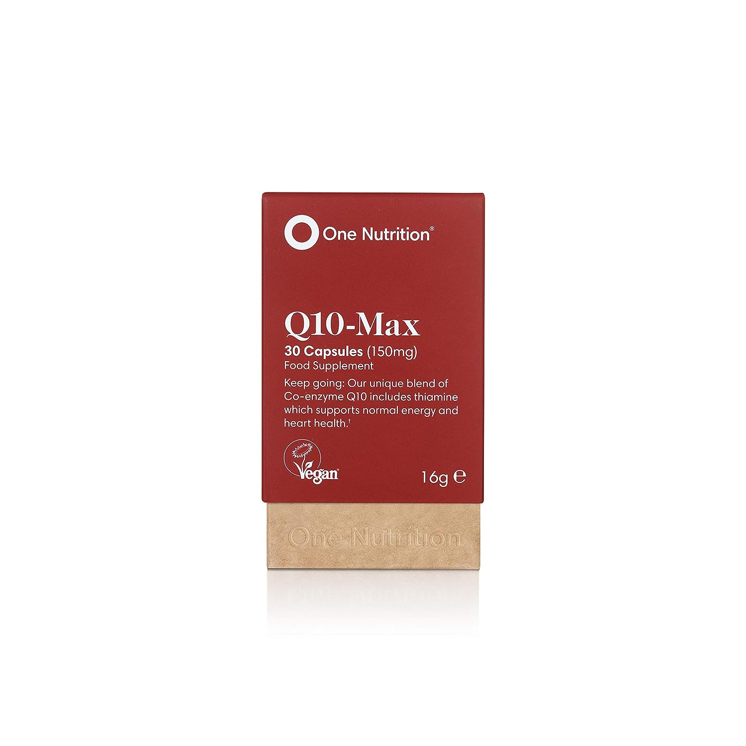 One Nutrition Q10-Max Healthy Heart - 30 Capsules One Nutrition Q10-Max Healthy Heart is made of a unique blend containing thiamine which supports normal energy and heart health. Q10 is a fat-soluble and vitamin-like nutrient that’s produced naturally by our bodies for energy and to act as an antioxidant. It’s in every single cell in our body but particularly concentrated in key organs requiring loads of energy, such as the heart. Q10 exists either in its oxidised form, ubiquinone, or in its reduced form, ubiquinol. These convert to either form as needed in a continuous cycle. Vitamin B1, also known as Thiamine, is used throughout the body to help fuel your metabolism and keep your nervous system working. As your heart is the most active muscle in your body, requiring constant fuel and co-ordinated messages from the nervous system, Thiamine is the ideal aid for heart health. High Strength 150mg Co-enzyme Q10 per capsule Supports normal energy and heart health Suitable for those taking statin drugs Maintains normal function of the nervous system Sustainable packaging Suitable for Vegans and Vegetarians