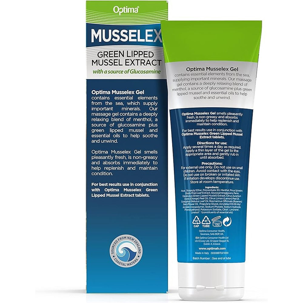 Optima Musselflex Gel contains essential elements from the sea, which supply important minerals. This massage gel contains a deeply relaxing blend of menthol, a source of glucosamine plus green lipped mussel and essential oils to help soothe and unwind. Optima Musselflex Gel smells pleasantly fresh, is non-greasy and absorbs immediately to replenish and maintain condition. Available in 125 ml.