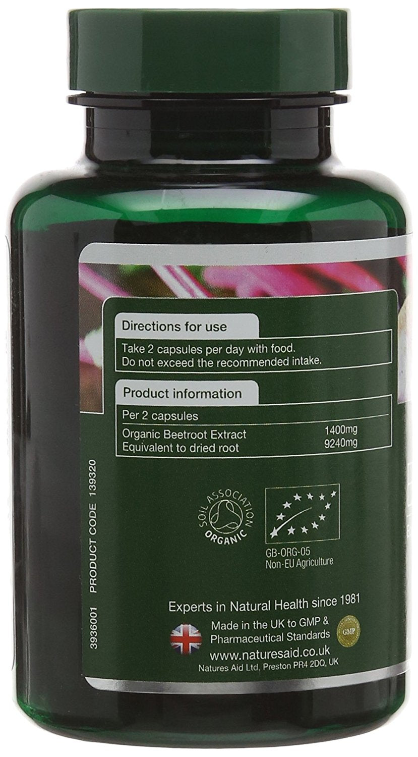 Natures Aid Organic Beetroot capsule provides the equivalent of 4620 mg dried root. The potential health benefits of beetroot have been recorded since Roman times and have been the subject of much excitement and research in recent years. Certified Organic by the Soil Association. Available in 60 capsules.