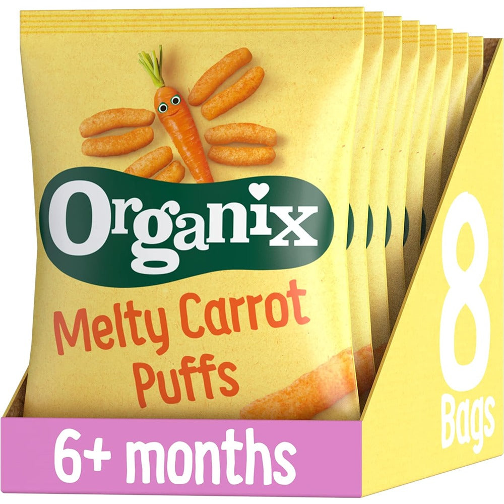 - HEALTHY ORGANIC SNACK FOR KIDS: At Organix we only use organic corn in our carrot puffs which is gently baked into sticks that are chunky and are easy to grab. They?re perfectly sized for little fingers and melt in the mouth too. Suitable for 6+ months.
