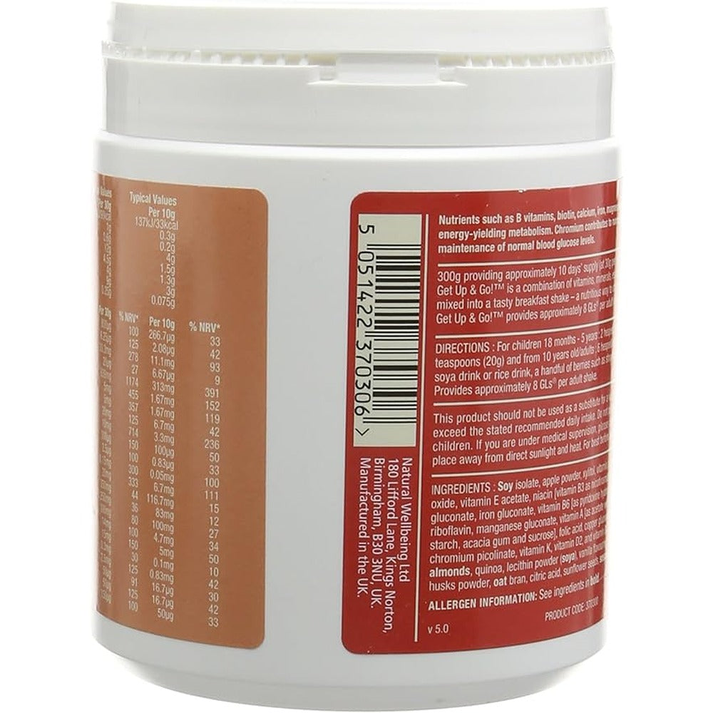 BioCare Patrick Holford get up and go powder is a vitamins and minerals in a delicious low glycemic load, GL, breakfast shake powder. It contains a range of vitamins and minerals, one third of your daily protein requirements and relevant levels of essential fatty acids and is made from the best quality whole foods, ground into a powder. The carbohydrate comes principally from apple powder, the protein from quinoa, soya and rice flour, the essential fats from ground sesame, sunflower and pumpkin seeds, the fibre from oat bran, rice branand psyllium husks and additional flavour from almond meal, cinnamon and natural vanilla. It is sweetened with xylitol, a naturally occurring sugar molecule which is absorbed slowly and does not contribute to high blood sugar levels. It is suitable for use with breakfast and for vegetarians and vegans. It contains soya, nuts, sesame seeds and gluten.