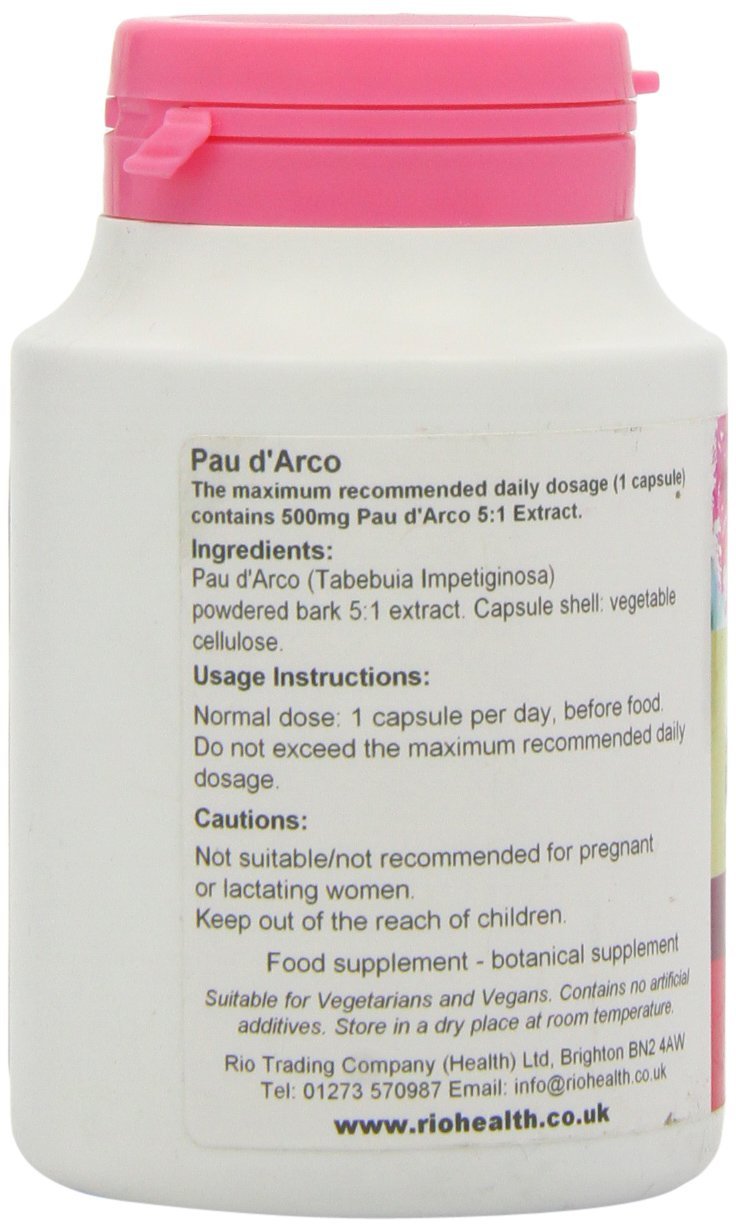 IngredientsPau dArco (Tabebuia impetiginosa) powdered bark 5:1 extract. Capsule shell: vegetable cellulose.