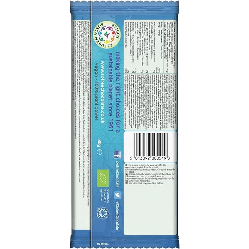 Plamil So Free Organic Fairtrade Milk Alternative Thin Chocolate Bars tastes just like milk chocolate. No milk, no nuts and gluten-free, this dairy-free milk chocolate is suitable for vegans. Certified organic and Fairtrade. Ethically made with renewable energy. Available in 12 bars of 80 g each.
