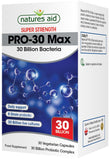 Natures Aid Pro-30 MAX is a super- strength daily complex containing eight strains of bacteria. Each daily capsule contains 30 billion live organisms, using eight extensively researched strains of bacteria, including four strains of Lactobacillus. A great choice for ongoing daily support and for nurturing a healthy microbiome. Available in 30 capsules.