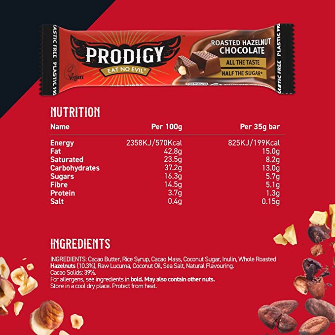 Prodigy Snacks Roasted Hazelnut Chocolate Bar 35g - 15 Pack