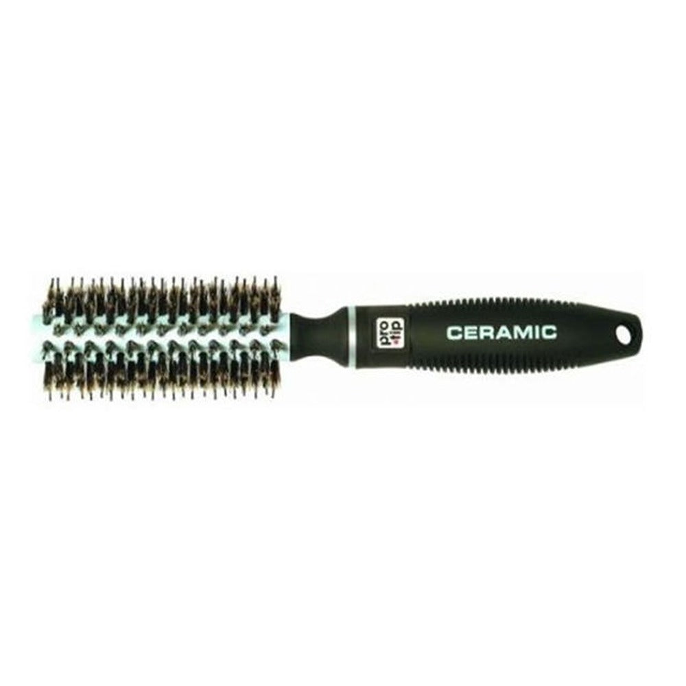 Pro Tip Ceramic Porcupine Radial hairbrush has a solid barrel and a ceramic coated ergonomic handle. It also has a bristle and ball end nylon combination. An excellent tool for ensuring even heat distribution throughout hair. Barrel Diameter: 18 mm.