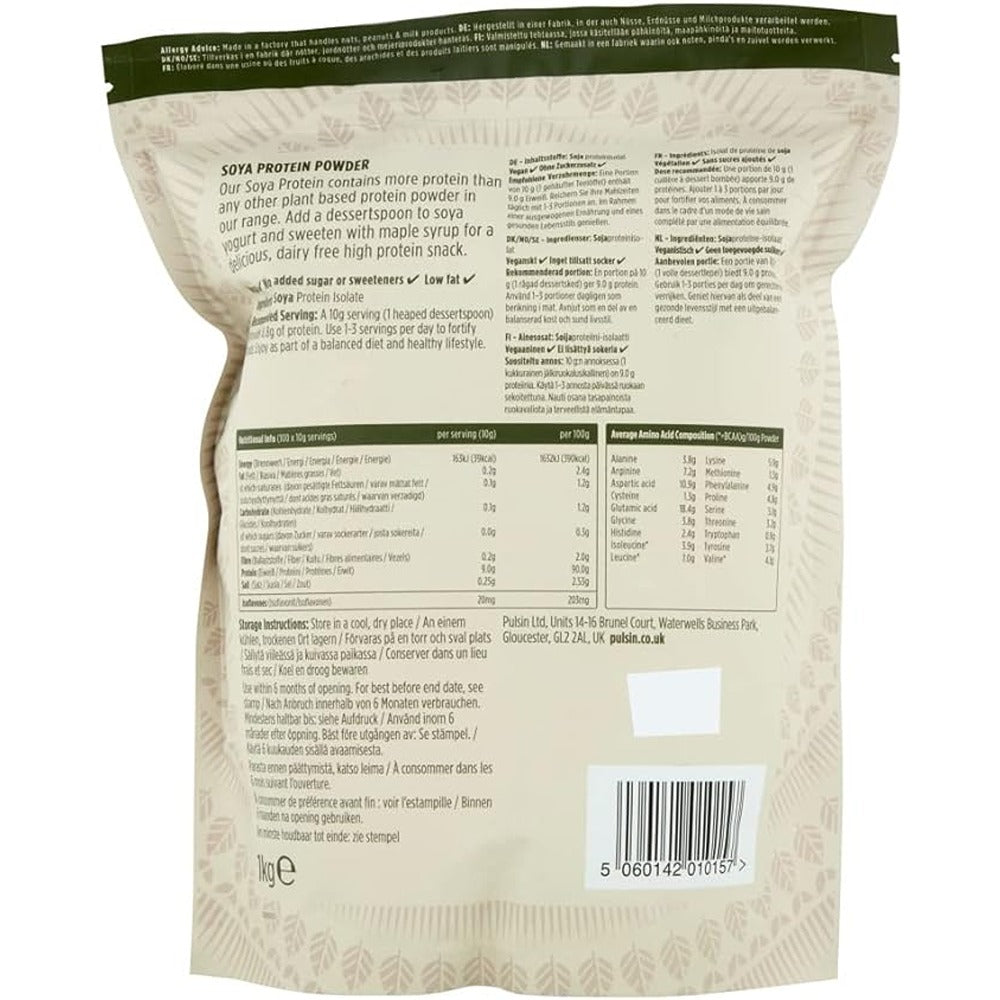 We?re Pulsin, creators of great tasting healthy snack bars, protein powders and shakes! Our Soya Protein Powder is extremely easy to use and provides your body with essential amino acids. Add a dessertspoon of our Soya Protein to soya yogurt and sweeten with maple syrup for a delicious, plant based, high protein snack! Contains 90% protein making it the highest plant based protein powder in our range and an excellent source of isoflavones (active plant compounds naturally found in beans). Made with all natural, premium ingredients selected for maximum nutritional benefit. Vegan, gluten-free, non GM and contains no added fillers, sugars or sweeteners, making it a great alternative to whey protein. PERFECT FOR EVERYONE - Often recommended by nutritionists, soya protein is the ideal ingredient for vegetarians, vegans, athletes or those on a weight loss diet!