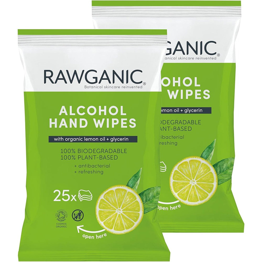 Rawganic Organic Alcohol Hand Wipes 15x20cm Pack - 3 Pack