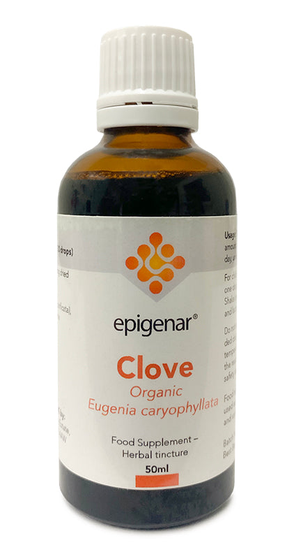 Organic tincture of Clove. Suitable for use with children (age2+). Easy to dose drops.