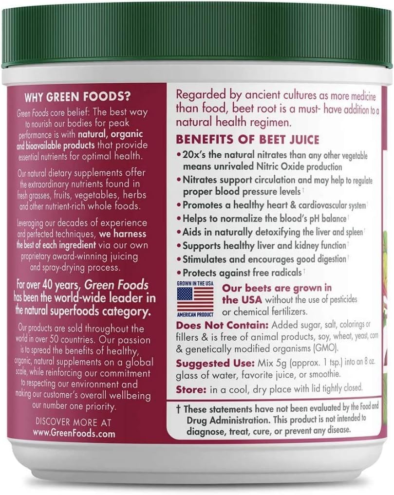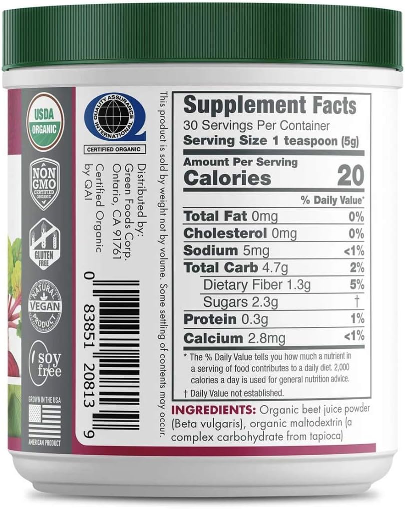 IngredientsOrganic beet juice powder (Beta vulgaris), organic maltodextrin (a complex carbohydrate from tapioca)